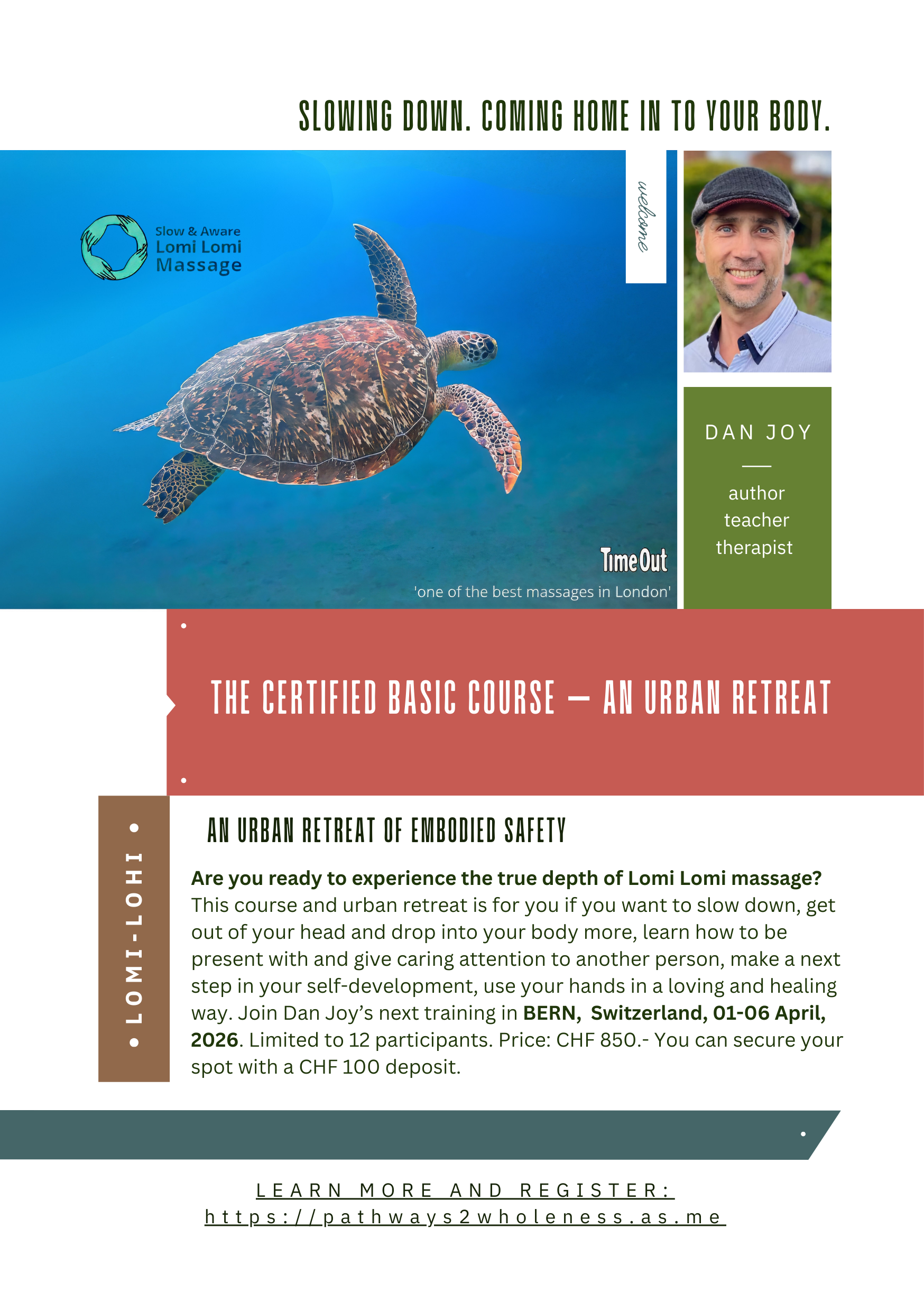 In April 25 I (Robb Correll, co-founder and principal DJ at Ecstatic Dance Berne) hosted a first Lomi-Lomi course with Dan Joy and it was a great success on multiple levels. Everyone who participated in the course got access to transformation in some way – new possibilities in being and doing – along with learning how to give a 2 hour ritual lomi-lomi massage.